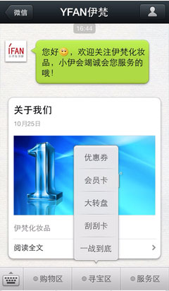 扫一扫,关注微信公共帐号营销平台官方微信,体验微信公共帐号营销平台智能服务